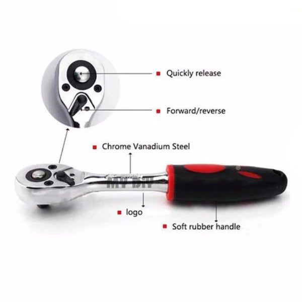 1. The screwdriver handle can meet batch head (a word cross T word plum blossom socket head hex extension rod universal joint can receive bending bar) 2. The socket using high-quality chrome vanadium steel 50 bv30 cold-press forming, torque 50% higher than that of carbon steel, use inferior smooth surface processing, good rust prevention effect. Batch head adopts cr-v materials, stronger hardness, toughness is higher. 3. Rapid fall off ratchet wrench (positive and negative adjustable), The push button quick release feature ensures taht the socket is locked securely while in use, but also allows for easy removal or quick change of socket evev with greasy or oily finger. and our high quality 45 teeth ratchet can improve the operation speed. Is open throttle, in air conditioning, seat nut, tire fenders, car door locks, home (basic contains) usually used in the suit small screw nut the ideal of a set of tools
